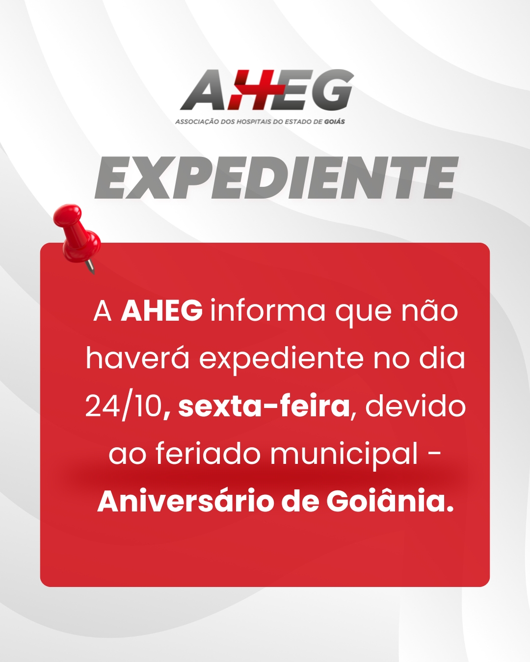 A Associação dos Hospitais do Estado de Goiás – AHEG convida você para o 5º Encontro dos Gestores Hospitalares do Estado de Goiás, que acontecerá no dia 16 de outubro, às 09h, no auditório da AHEG – Alameda Botafogo, nº 101, Centro, Goiânia (GO).